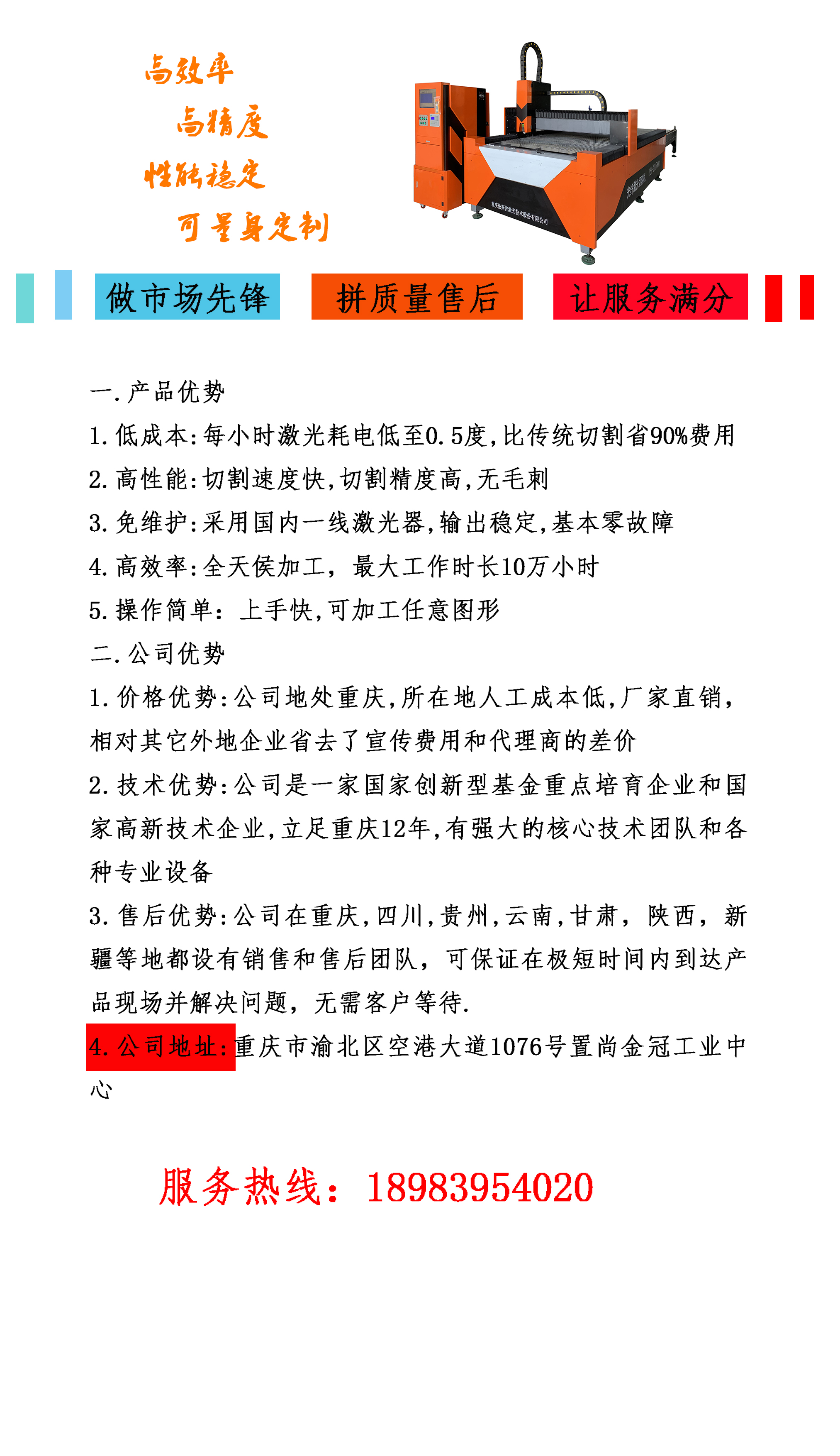 重慶依斯普激光技術(shù)股份有限公司 是一家科技型高新技術(shù)企業(yè),公司位于重慶市渝北區(qū)空港大道1076號(hào)置尚金冠工業(yè)中心,占地面積約五千平方米,吸收了國(guó)外的先進(jìn)的技術(shù),專(zhuān)業(yè)研發(fā)、制造和銷(xiāo)售各類(lèi)激光控制技術(shù)應(yīng)用類(lèi)產(chǎn)品。公司被評(píng)為創(chuàng)新基金重點(diǎn)培育企業(yè),專(zhuān)精特新企業(yè),通過(guò)了ISO9001質(zhì)量管理體系認(rèn)證,產(chǎn)品多次獲得重慶市高新技術(shù)產(chǎn)品證書(shū)及實(shí)用新型專(zhuān)利證書(shū)等。 依斯普激光的主導(dǎo)產(chǎn)品為激光切割機(jī)系列、激光焊接機(jī)系列,激光打標(biāo)機(jī)及氣動(dòng)打標(biāo)機(jī)系列等,廣泛應(yīng)用在
